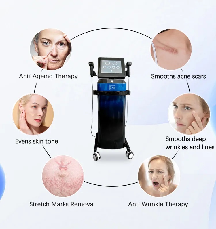 It is a minimally invasive fractional treatment combining microneedles and RF energy.Under the control of the electronic system, dozens of insulated needles quickly penetrate the epidermis at the same time, emit RF energy from the needle tip, and then quickly exit the skin.